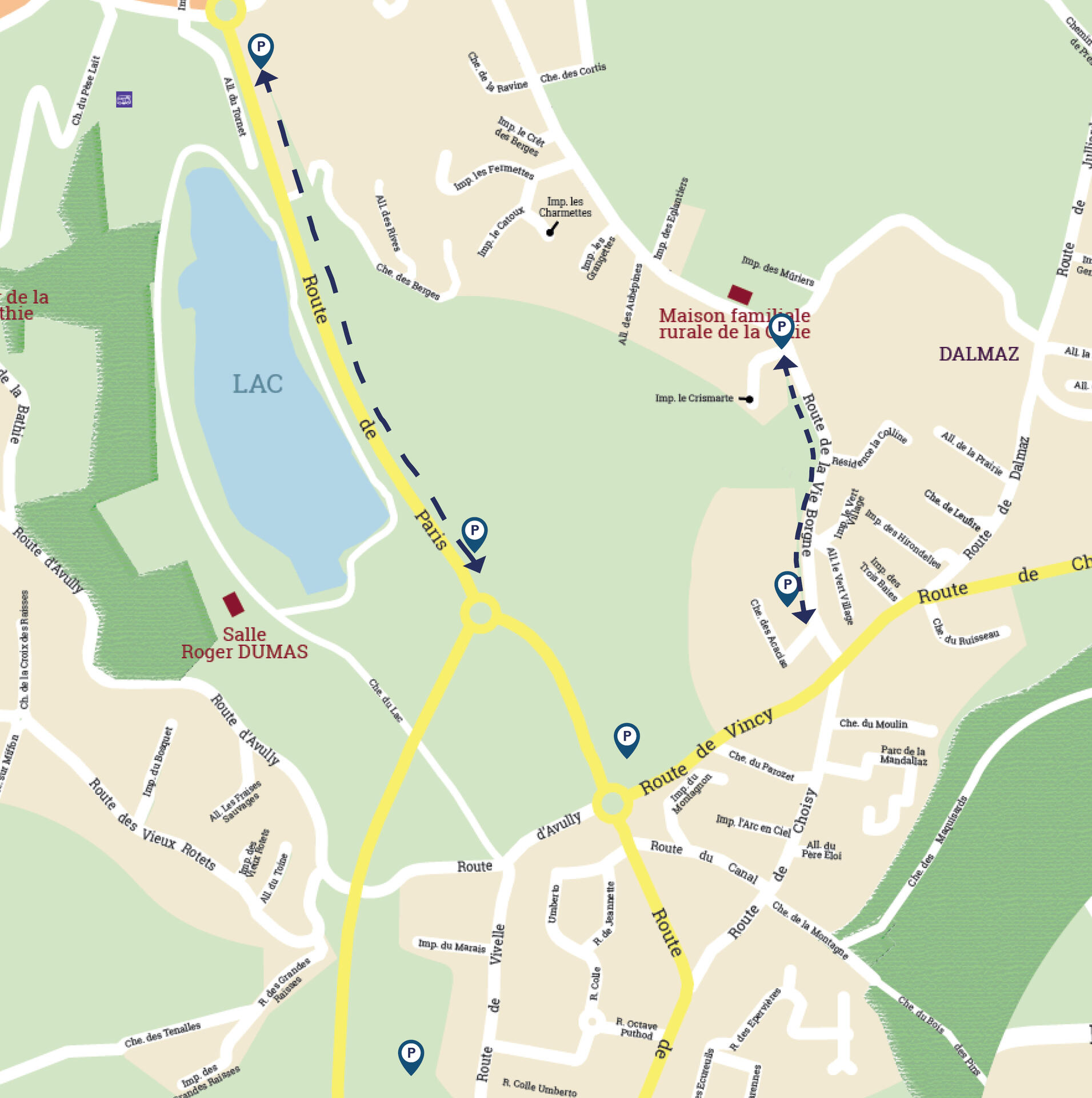 - Le long de la Route de Paris entre les deux ronds-points du lac