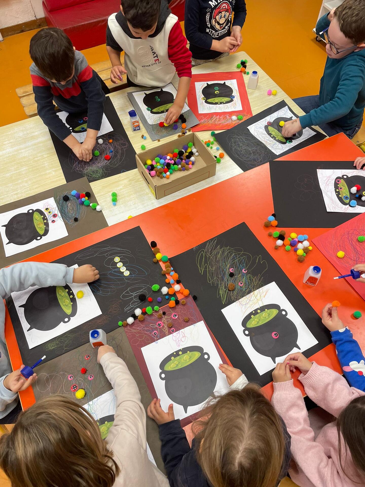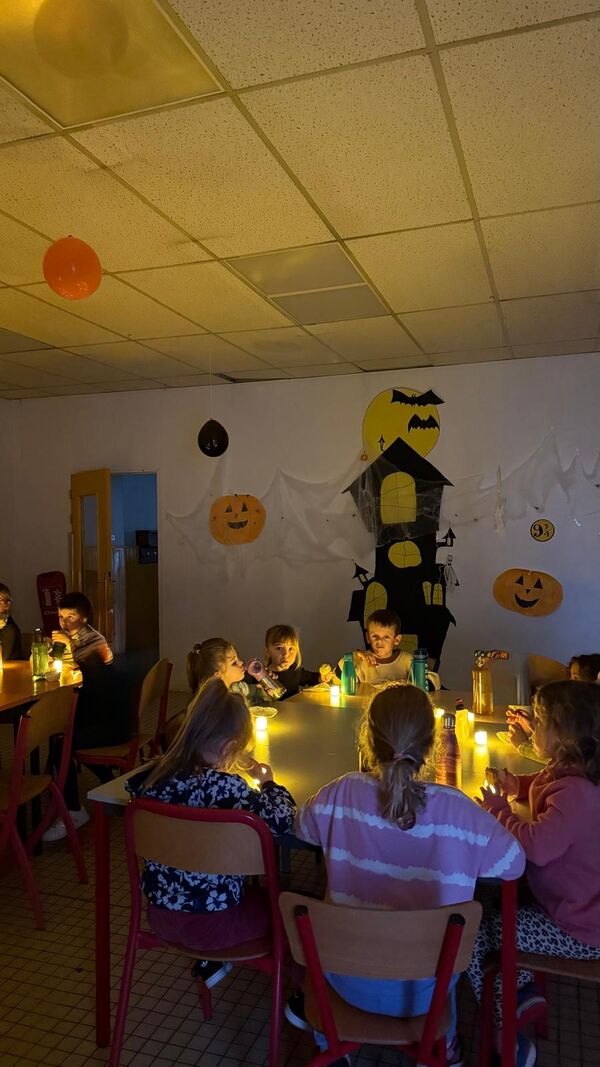 - Les 3-5 ans ont exploré l’univers d’Halloween : décoration de chaudrons, fabrication de fantômes en coton, chasse aux bonbons et bal des petites citrouilles.