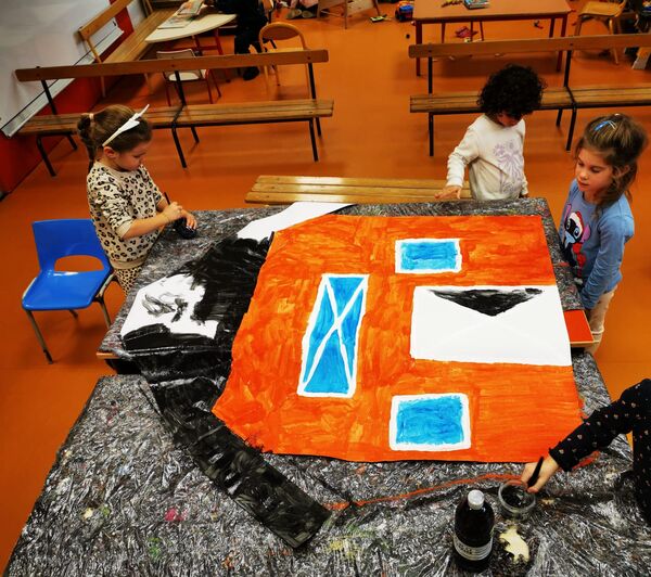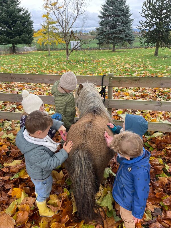 - Les 3-5 ans ont plongé dans l’univers des animaux de la ferme : création d’une fresque géante, visite d’une ferme pédagogique à Vallières-sur-Fier, fabrication de poules en collage et de moutons en PlayMais… Une semaine riche en découvertes et en rires !
