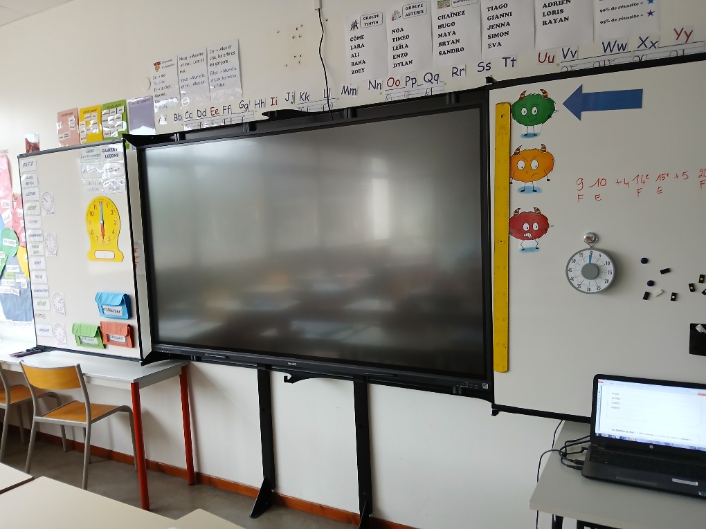 La commune a procédé au remplacement de deux vidéoprojecteurs par des écrans tactiles de 86 pouces afin d’améliorer le confort et la qualité d’apprentissage des élèves.