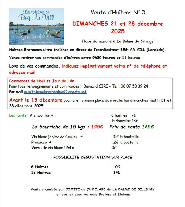 Le Comité de Jumelage vous propose ses délicieuses huîtres bretonnes pour les fêtes.