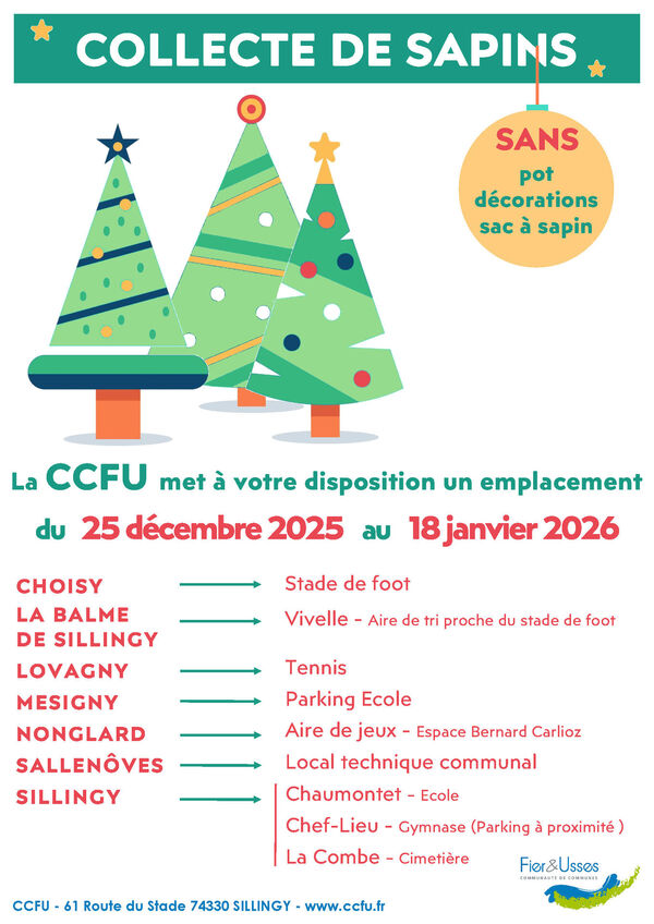 Les fêtes de fin d’année sont désormais derrière nous, et avec elles, les traditionnels sapins de Noël. Afin de faciliter leur élimination, la Communauté de Communes Fier et Usses a mis en place une collecte spéciale.