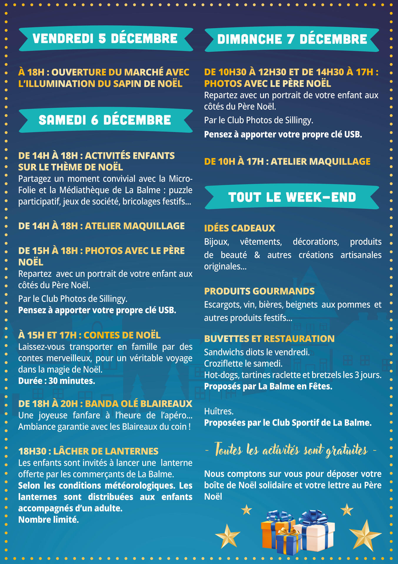 Du vendredi 5 au dimanche 7 décembre, la commune de La Balme de Sillingy vous invite à plonger dans l'atmosphère féerique des fêtes de fin d'année avec son traditionnel marché de Noël sur le parking de la salle Georges DAVIET.