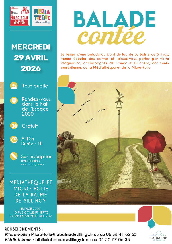 Le temps d’une balade au bord du lac de La Balme de Sillingy, venez écouter des contes et laissez-vous porter par votre imagination, accompagnés de Françoise Guicherd, conteuse-comédienne, de la Médiathèque et de la Micro-Folie.